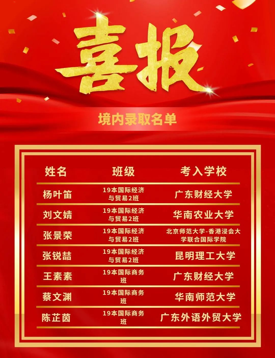 境内升学名单