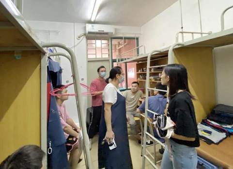 夕阳西下,迎新活动也接近了尾声。学院辅导员带队到新生宿舍走访,与新生们亲切交流,关心他们的入宿情况与生活问题等。新生报道完毕后,学院辅导员迅速地选出班级临时负责人,有序安排新生们进行教材发放领取与入学体检等事宜,保障了接下来新生们课程的顺利进行。