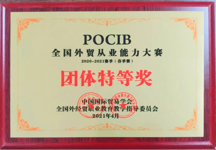“POCIB全国外贸从业能力大赛”团体特等奖