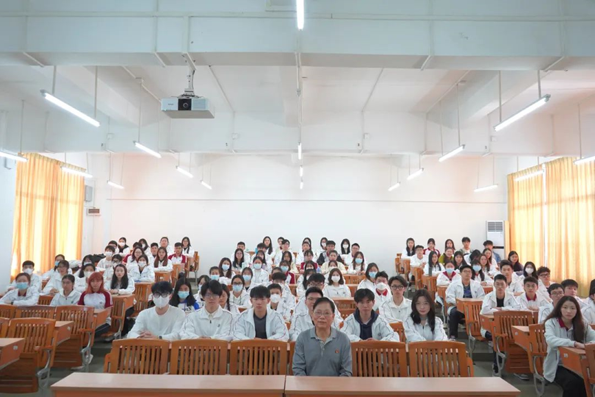 最后,卢教授以习近平总书记在二十大报告中谈到的“广大青年要坚定不移听党话、跟党走,怀抱梦想又脚踏实地,敢想敢为又善作善成,立志做有理想、敢担当、能吃苦、肯奋斗的新时代好青年,让青春在全面建设社会主义现代化国家的火热实践中绽放绚丽之花。”寄语同学们要积极上进,争做新时代的好青年。
