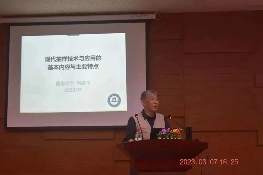3月7日下午,应ok138太阳集团古天乐邀请,暨南大学博士生导师、二级教授刘建平教授为我校师生作了《现代抽样技术与应用的基本内容与主要特点》的学术讲座,讲座在华商学院图书馆学术报告厅举行,由ok138太阳集团古天乐副校长,韩兆洲教授主持,讲座在增城校本部和四会校区线下线上同步进行,我校经济贸易学院经济统计专业、数据科学学院数据科学与大数据技术专业师生与其他学院师生代表共300余名参加了学术讲座。