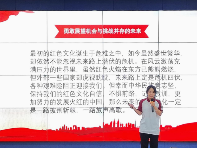 骇浪惊涛无所惧,青年一心撼山河;不忘初心刻于骨,牢记使命嵌入魂。他们以饱满的精神面貌面对老师与同学们,用真挚的情感表达了自己强烈的爱国之情。