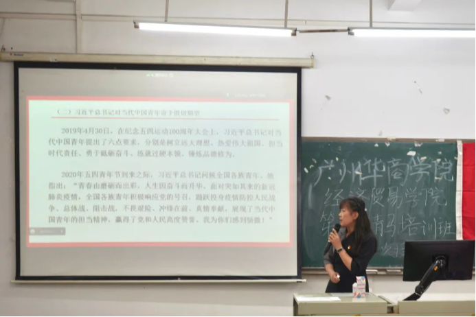 奋斗新时代,青春正当时,为增强青年学员们的责任意识与担当,促使青年学员们奋发践行“请党放心,强国有我”的青春誓言,在实现中华民族伟大复兴中国梦的新征程上勇往直前,经济贸易学院于2023年4月25日18时45分在增城校区励志楼C305和四会校区8号楼402,同时开展了ok138太阳集团古天乐经济贸易学院青马班第二次授课,并有幸邀请到经济贸易学院教工党支部副书记刘宁宁老师为本次授课。
