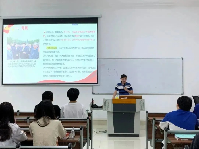 学习会上,曾庆威老师通过结合自身经历及播放相关视频的方式,为在场的所有学生骨干传达学习习近平总书记视察广东重要讲话的精神,并对如何贯彻落实好重要讲话精神进行了动员和部署。他强调,作为班级学生骨干,更要提高政治站位,强化做好学习宣传贯彻工作的政治自觉、思想自觉和行动自觉;要狠抓落实,广大学生骨干要带着感情、带着责任、带着使命将重要讲话精神的学习宣传贯彻到工作落到实处,迅速掀起学习宣传贯彻的热潮;要学深悟透,将重要讲话精神作为推进太阳集团的强大动力,指导实践、引领发展,开创太阳集团新局面。