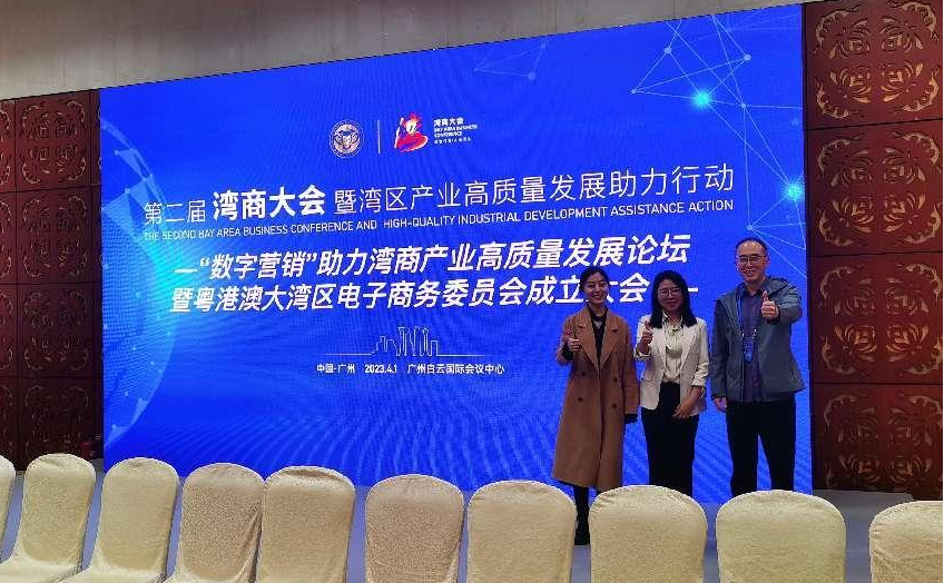 第二届湾商大会暨湾区产业高质量发展助力行动于2023年4月1日,在广州白云国际会议中心举办。大会以“新时代、新机遇、新动能”为主题,以“助力湾区产业高质量发展”为主线,突出湾商创新力、创造力,聚焦湾商新动能,体现中国式现代化的湾商责任与担当。本届大会是在省、市政府有关部门指导和支持下,在立白、广药、华商教育、红八方、红海人力、唯品会、科大迅飞、瑞松智能等近百家上市公司、行业龙头、独角兽企业及香港全港各区工商联、澳门电子商务协会、澳门数字中国科技联盟、省机器人协会、省广告协会、省品牌促进会等大湾区近百家知名协会的积极响应和深度参与下,由第二届湾商大会组委会主办、广州市粤港澳大湾区经济文化促进会牵头承办。经济贸易学院跨境电子商务专业的李伟教授、曹维老师、张嘉欣老师、潘锦文老师参加了本次大会和“数字营销助力湾商产业高质量发展”论坛。