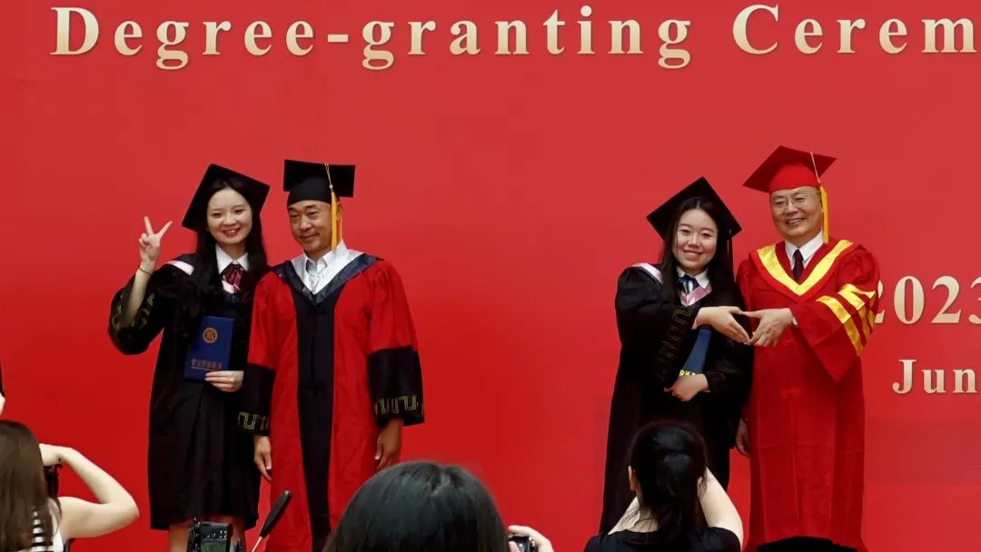 视频结尾,两位在2019年入学初陪伴的兼职辅导员惊喜地为毕业生们献上了她们的祝福。