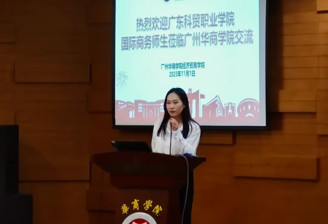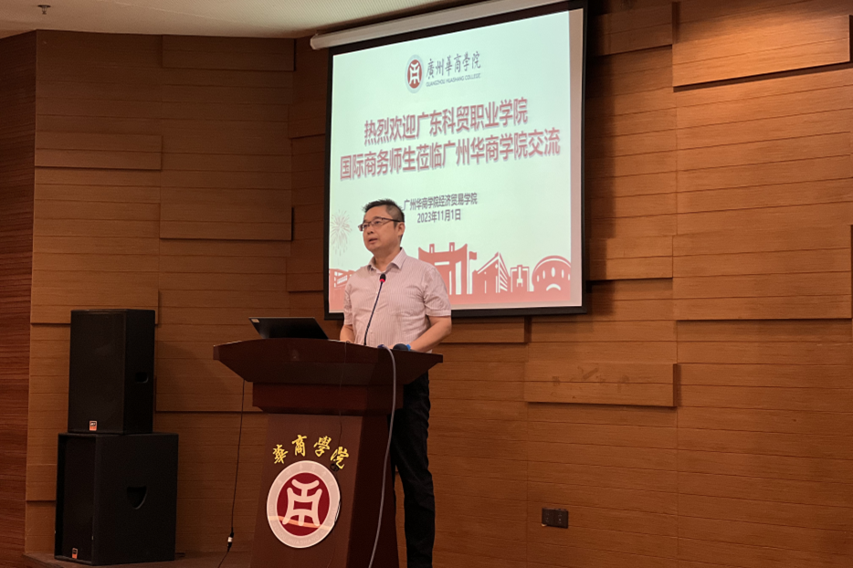 广东科贸职业学院商贸学院关善勇院长首先对华商经贸学院师生的热情接待表达了感谢,并介绍了广东科贸职业学院及其商贸学院的发展、校区设置、专业设置,教学成果等方面的具体情况。特别是在学院建设中提出着力于四个提升:专业特色提升、课堂教学水平的提升、产教融合水平的提升以及社会服务方面的提升。