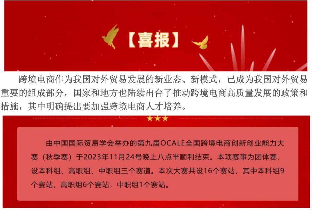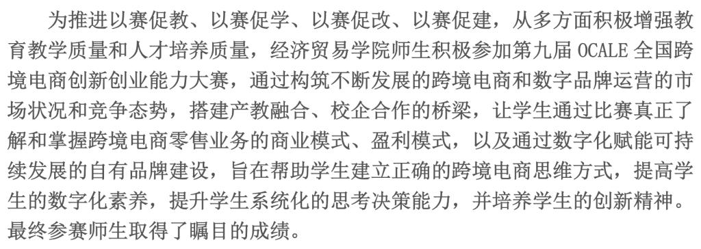 上一条:喜报 | 我院在全国大学生数字贸易综合技能大赛(数字贸易直播方向)总决赛取得佳绩 下一条:喜报|经济贸易学子在第二届数贸杯·全国大学生数字贸易综合技能大赛(数字贸易计划书方向、大数据分析方向)现场路演总决赛取得佳绩