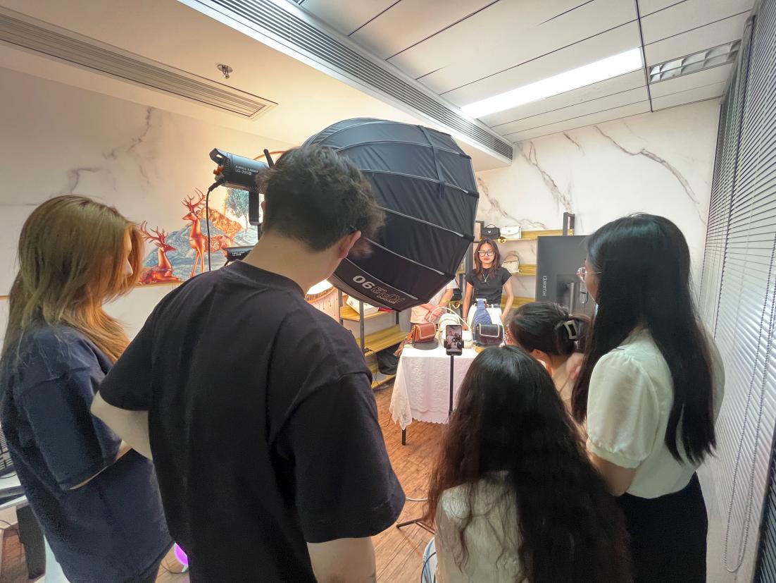 近日,在经济贸易学院跨境电子商务系张嘉欣老师和曹维老师的带领下,21级国际经济与贸易专升本一班学生徐诗晴、二班学生蔡李凯、袁金意,以及23级跨境电子商务1班学生官依琳走进了广州知鼎策划咨询有限公司,迎来了一次意义非凡的跨境电商直播实战机会,亲身体验了TikTok直播带货的魅力。这不仅是一次知识与实践的完美结合,更是对学生们未来职业生涯的提前预热。