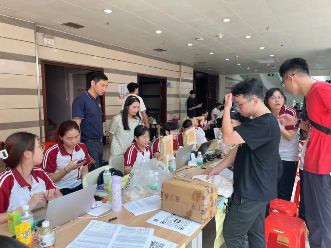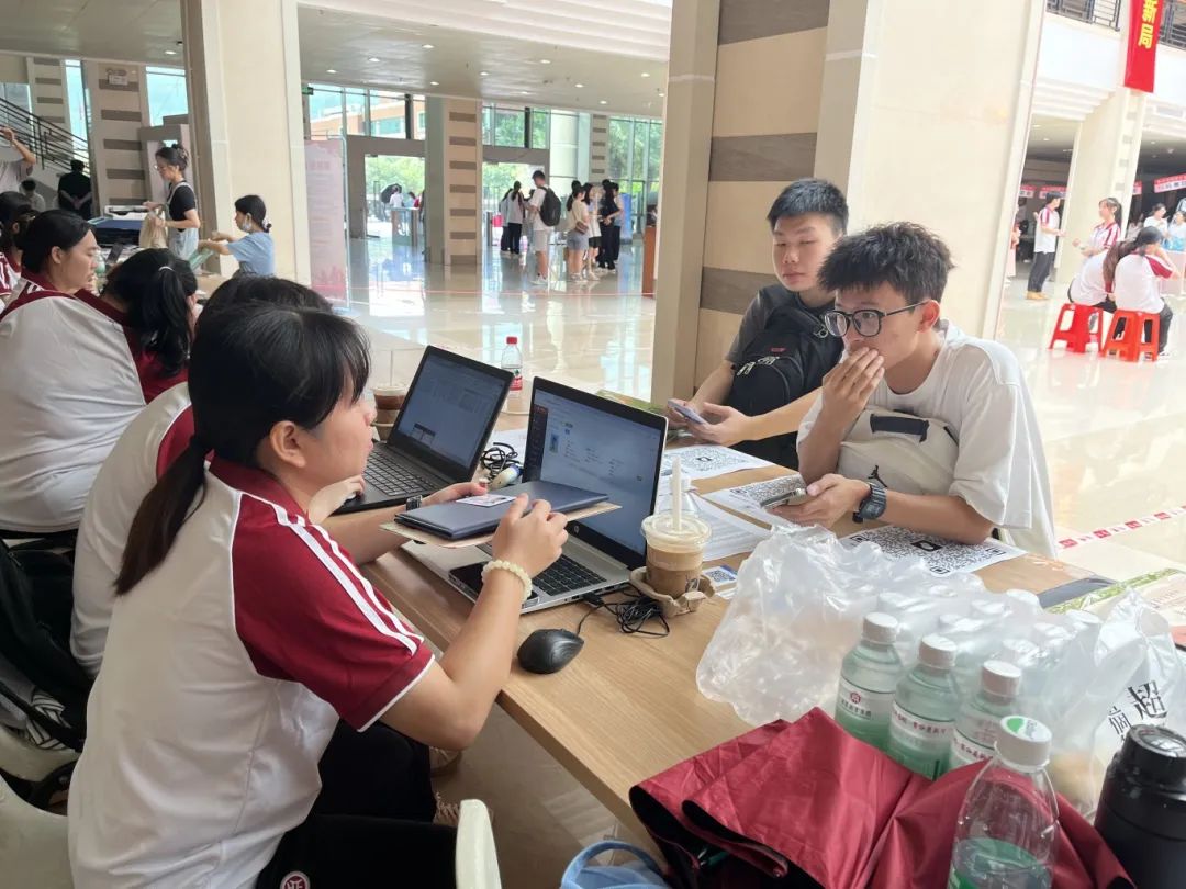 迎新点的志愿者们分工明确,从新生的报到、宿舍登记,到行李搬运安置,志愿者们相互配合,井然有序,从而使新生的整个报道过程变得更加和谐融洽。