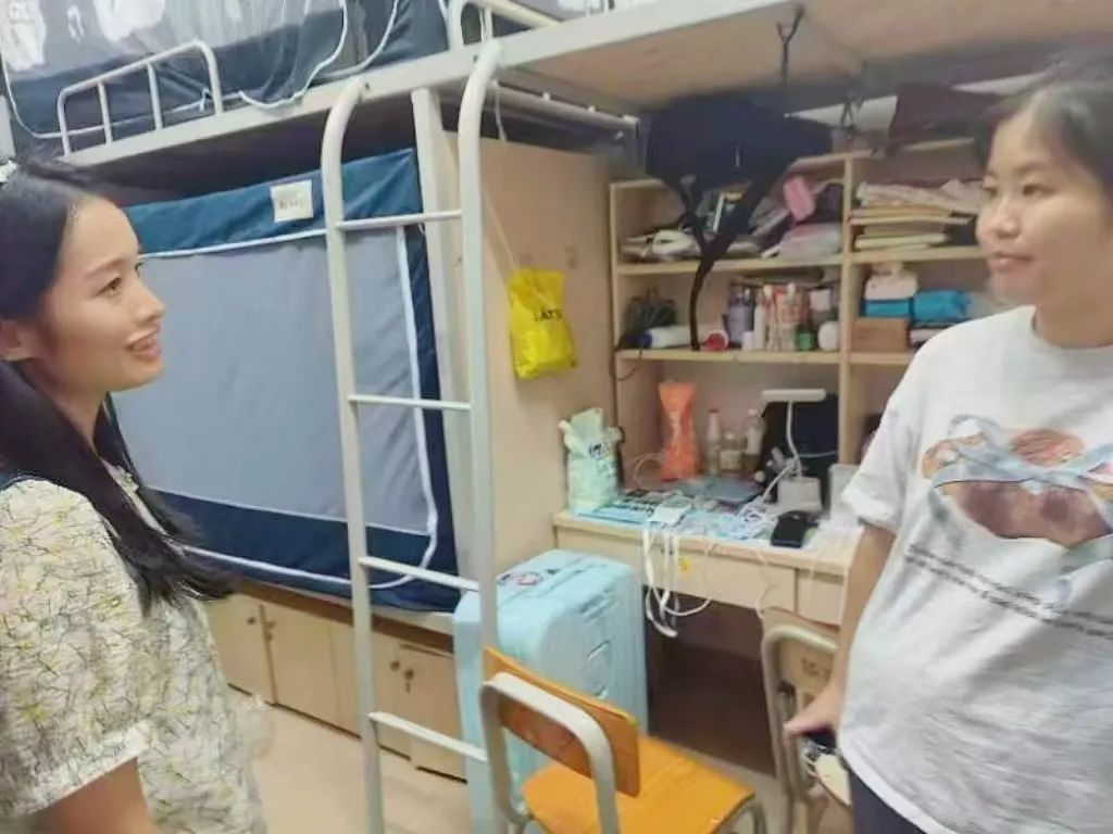 下午,辅导员李芳容老师来到新生宿舍,与新生进行友好交流,亲切问候新生状态,并询问嘱托了学校校园环境、水电交费、报道注册等信息,叮嘱新生加强防范意识、养成良好习惯,以帮助新生更好的适应新环境,表达了对新生的关怀和体贴。