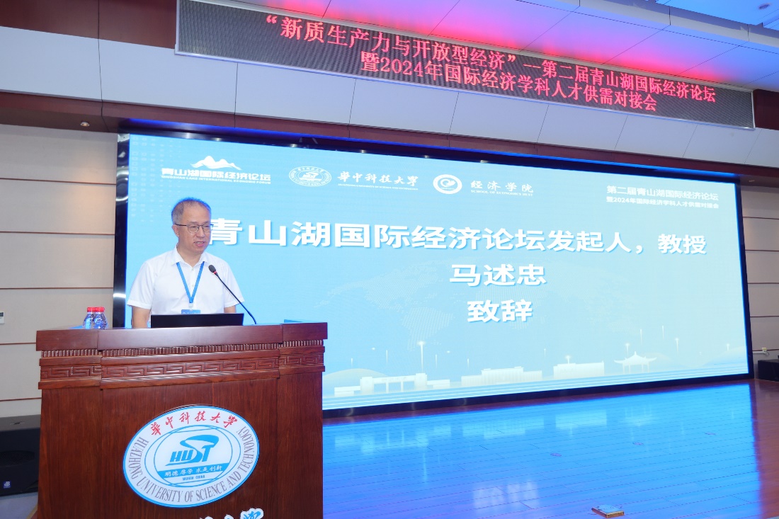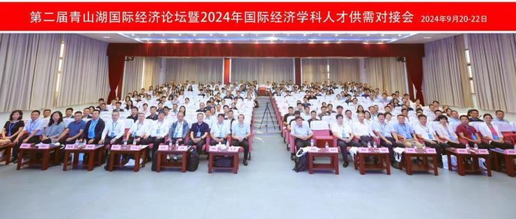2024年9月21日,第二届青山湖国际经济论坛暨2024年国际经济学科人才供需对接会在华中科技大学经济学院学术报告厅举行。本届论坛包含主旨演讲、发起人学术报告会、院长学术报告会、专家论坛、博士生论坛、数字经济与贸易标准研发论坛、全国大学生数字贸易综合能力大赛宣讲会、国际经济学科人才供需对接会等8个环节。会议邀请了国际贸易学、世界经济和国际商务专业领域的知名专家学者、期刊编辑以及来自140余所高校及相关单位的代表参会,共议新质生产力与开放型经济。