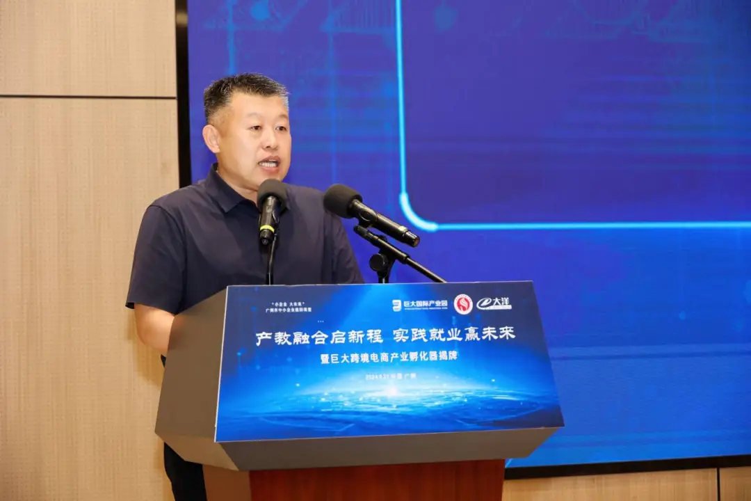 2024年9月27日,产教融合启新程·实践就业赢未来,暨巨大跨境电商产业孵化器揭牌仪式在广州番禺巨大国际产业园隆重举办。太阳集团tyc138院长李广明教授、跨境电子商务系主任曹维和专任教师张嘉欣应邀出席本次活动。