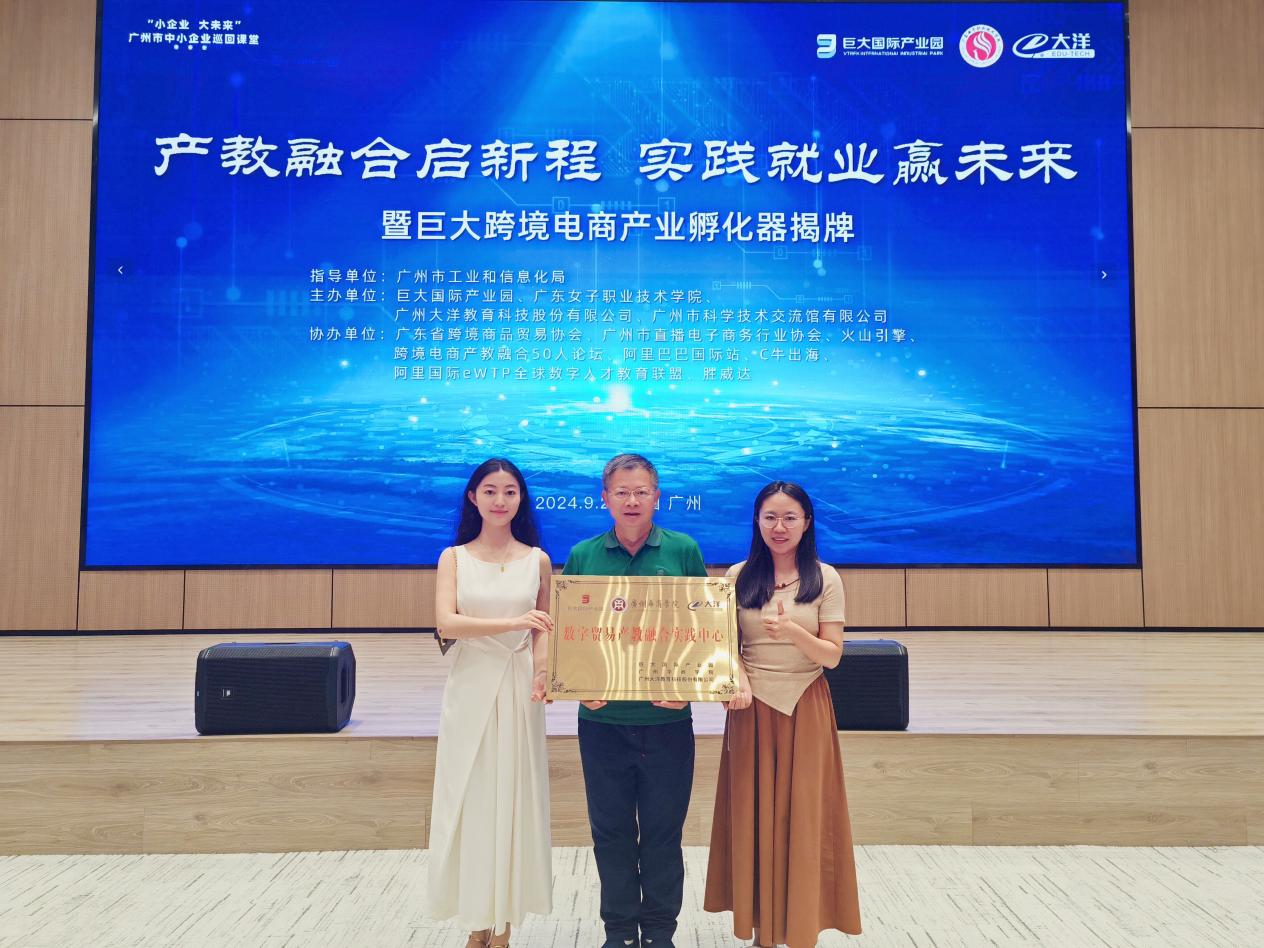 本次活动由巨大国际产业园、广东女子职业技术学院、广州大洋教育科技股份有限公司、广州市科学技术交流馆有限公司联手主办,得到广州市工业和信息化局、番禺区人力资源和社会保障局的大力支持,广东省跨境商品贸易协会、广州市直播电子商务行业协会、跨境电商产教融合50人论坛、阿里巴巴国际站、阿里国际eWTP全球数字人才教育联盟、火山引擎、C牛出海、胜威达协办。本次活动邀请了政府部门、知名院校、行业协会、领军企业、产业园、教育机构、主流媒体等多方参与,共同见证了这一里程碑式的时刻。