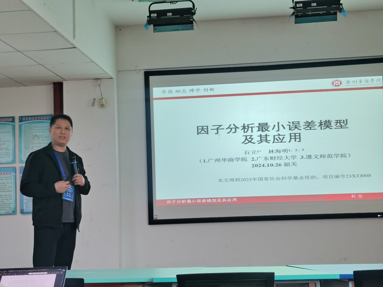 此外,石立副教授还受邀参加了广东省现场统计学会组织的“统计学科、专业建设研讨会”,石立副教授向与会专家分享了我校经济统计学专业和应用统计重点学科的发展历程和取得的成果,分析了当前存在的问题和未来的发展规划,在广东省统计学科领域的专家面前展现了我校统计学科的发展面貌。