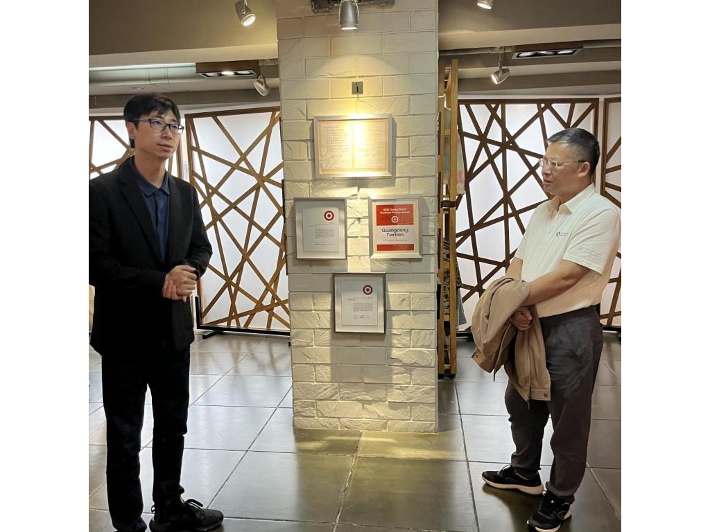 在广东省纺副总经理杜凌的陪同下,华商学院一行先后参观了庄姿尼南展厅、设计部门、牛仔展厅、毛衫展厅、工艺部及实验室。杜凌详细介绍了广东省纺的主营业务,包括童装、牛仔、家纺、西服、毛衫、内衣等领域,以及其从传统贸易到全平台电商运营的转型历程。同时,他还分享了公司的国际化战略布局,包括企业中国总部;美国、欧洲等主要国际市场,以及中南美、非洲、东南亚等生产基地的运营策略,以及,通过墨西哥和新加坡生产基地规避关税壁垒,以及肯尼亚在免税政策和基础设施完善方面的优势。