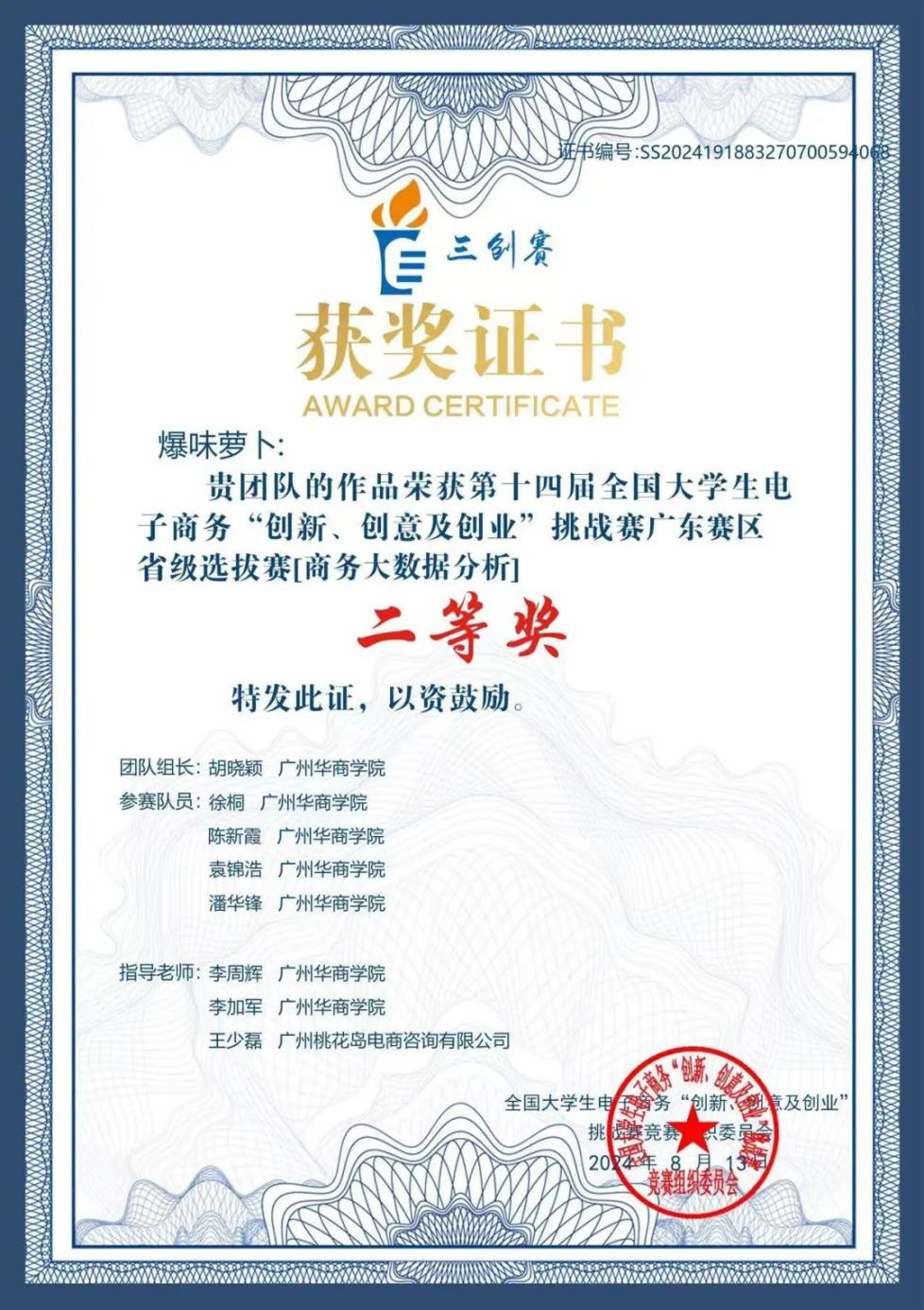 2.6月29日,第十四届全国大学生电子商务“创新、创意及创业”挑战赛(简称“三创赛”)广东省选拔赛在广州工商学院落下帷幕。经过激烈的角逐,最终ok138太阳集团古天乐“爆味萝卜”队凭借项目《IAA国际香氛生活电器店铺数据分析报告》,荣获三创赛省级二等奖,为学校争光添彩。