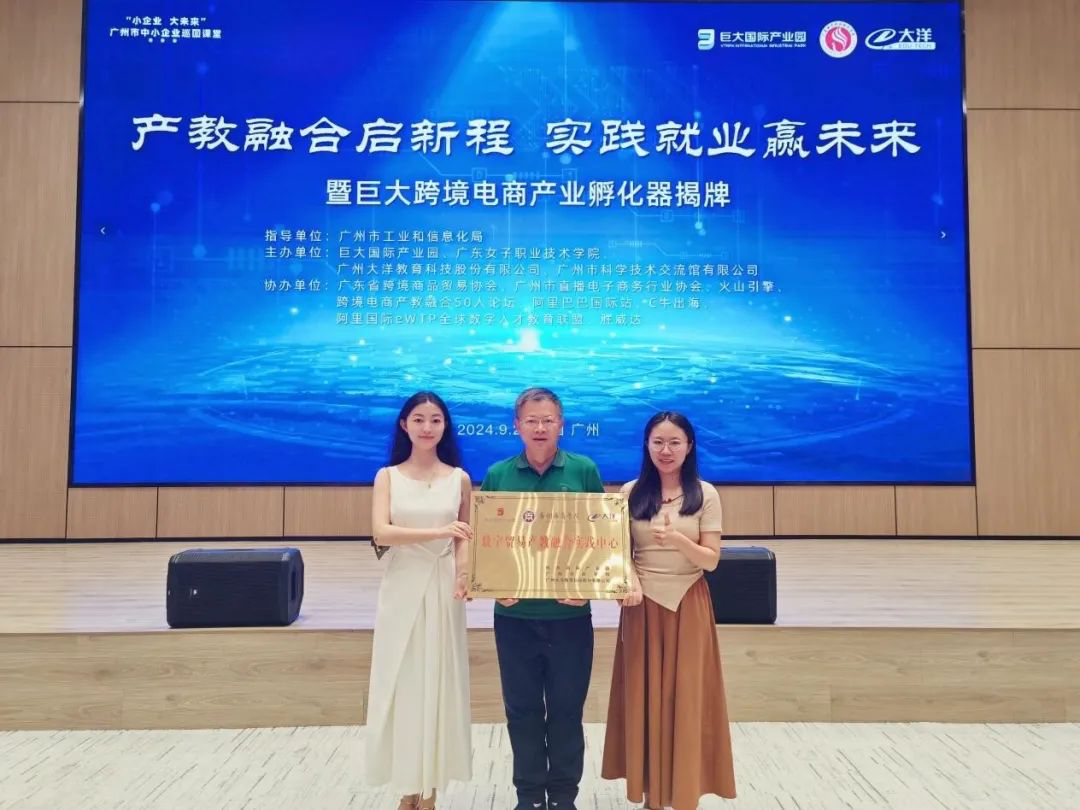 21.9月27日,产教融合启新程·实践就业赢未来,暨巨大跨境电商产业孵化器揭牌仪式在广州番禺巨大国际产业园隆重举办。太阳集团tyc138院长李广明教授、跨境电子商务系主任曹维和专任教师张嘉欣应邀出席本次活动。
