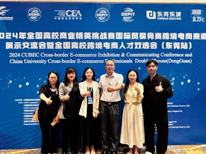 32.11月16日,2024年全国高校商业精英挑战赛国际贸易竞赛跨境电商赛道展示交流会暨全国高校跨境电商人才双选会(东莞站)顺利召开。为紧跟时代步伐,了解行业企业人才需求以培育更多具有国际视野和实战能力的跨境电商人才,数字经贸学院副院长李伟教授带队,曹维老师、张嘉欣老师、刘宁宁老师、黄业群老师及广州桃花岛电商咨询有限公司林培民老师参加了此次跨境电商人才双选会。