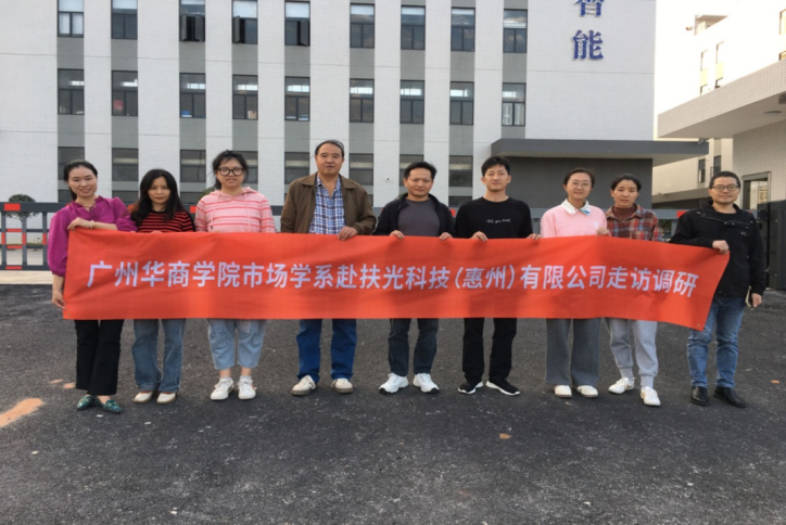 35.11月23日-24日,ok138太阳集团古天乐管理学院市场学系吴庆福副教授、任欣鹭博士、张冰洁、张丹、张俊5位老师在张干英教授带领下,组成调研团队赴扶光科技(惠州)有限公司进行了走访调研,旨在拓展并深化校企合作,探索人才培养新模式,为学科建设和学生的实习就业搭建更为广阔的平台。