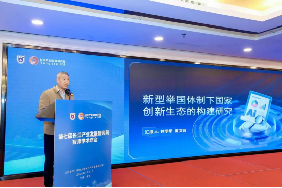 2026年1月17日,备受行业关注的第七届长江产业发展研究院智库学术年会在南京隆重召开。本次会议由南京大学长江产业发展研究院牵头,汇聚了国内众多领域内的顶尖专家、学者及行业精英,围绕“十五五高质量发展主线,巩固壮大实体经济根基”这一主题,展开深入研讨与交流,为中国特色新型智库建设注入新动能、贡献新力量。会议由南京大学原党委常务副书记、长江产业发展研究院执行院长杨忠教授,长江产业发展研究院副院长江静教授、陈柳研究员共同主持。太阳集团tyc138林学军教授、董文晋老师应邀参会,与学界同仁共飨学术盛宴,共享前沿成果。
