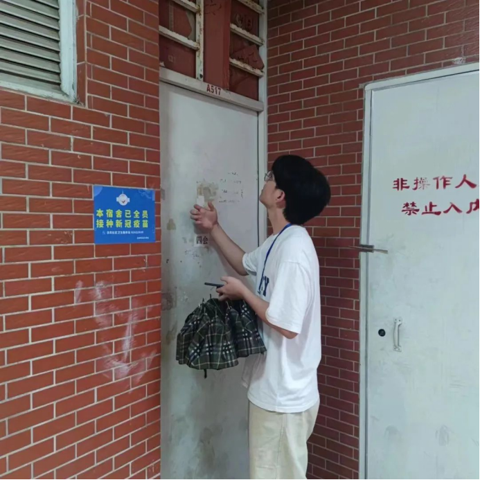 工作人员检查宿舍