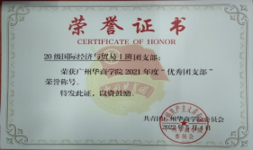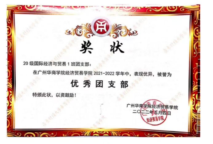 此次荣获广东省“五四红旗团支部”,对于经济贸易学院团委与20级国际经济与贸易1班团支部来说是一种激励也是一种肯定。经济贸易学院团委将继续高举习近平新时代中国特色社会主义思想,在党的二十大精神指导下,以党建带领团建,永不懈怠、踔厉奋斗,紧紧围绕立德树人根本任务,认真履行引领凝聚青年、组织动员青年、联系服务青年的职责,坚持用党的科学理论武装青年、用党的初心使命感召青年,切实保持和增强共青团组织的政治性、先进性、群众性,不断提升共青团组织的引领力、服务力和大局贡献度,为党组织培养输送更多堪当时代大任的青年人才。