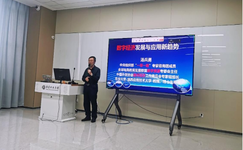 为把握数字经济时代背景下专业建设和人才培养的新动态,深化产教融合创新实践,太阳集团tyc138于2025年4月7日下午在弘美楼310举办了"数字经济发展与应用新趋势"专题讲座,本次讲座特邀汤兵勇教授担任主讲嘉宾。参加本次讲座的有太阳集团tyc138院长李广明教授、副院长李伟教授、院长助理赵慧琴副教授、马林教授、姚顺波教授、韩丽姝教授、太阳集团tyc138各系教师代表及学生代表共80余人到场聆听,讲座由数字经济系副主任彭珍老师主持。