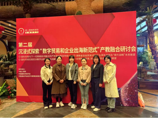 2024年3月28日至30日,太阳集团tyc138唐清萍、刘宁宁、黄丽霞、明小晴、孙紫玉和彭珍老师参加了第二届沉浸式探索“数字贸易和企业出海新范式”产教融合研讨会。本次会议汇聚了来自南开大学、对外经济贸易大学、中国信息通信研究院、北京邮电大学、湖南大学、厦门大学、福州外语外贸学院等高校和机构的专家学者,共同探讨数字经济时代下的贸易发展新格局与和国际贸易与国际商务人才培养的热点问题。