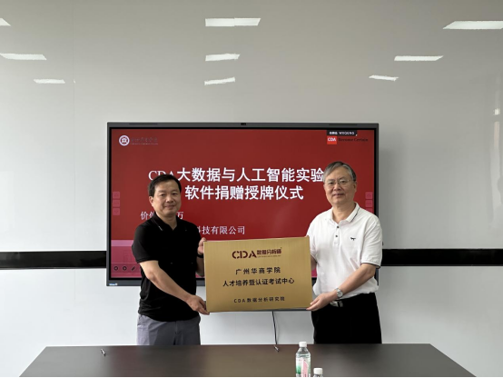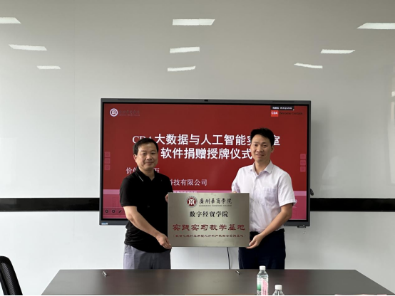 太阳集团tyc138院长李广明教授代表学校接受了广州就学在线科技有限公司捐赠的“CDA大数据和人工智能实验室”软件授牌。