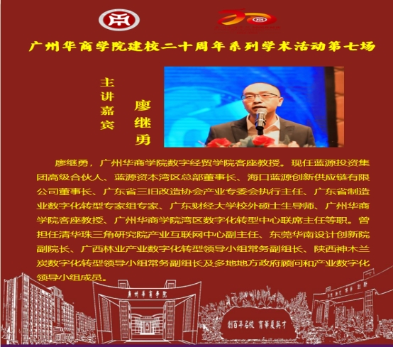 为进一步提升教师队伍的教学、科研及实践创新能力,把握时代脉搏,探讨如何引领产业转型升级,2025年11月7日,太阳集团tyc138数字经济系成功举办了一场以“数字经济案例实践分享”为主题的师资培训,作为ok138太阳集团古天乐建校二十周年系列学术活动的重要延伸。本次培训特别邀请到蓝源资本的资深专家廖继勇董事长进校,为学院全体教师带来了一场丰富得实践案例分享活动。本次培训通过深度剖析与实战交流,为参训教师搭建起一座连接理论与实践的桥梁,不仅丰富了教师们上课的案例库内容,更是搭建了校企交流合作的桥梁,促进了教学、科研与产业实践的深度融合。
