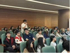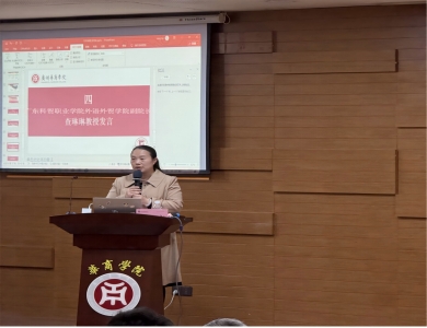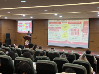 交流会伊始,刘宁宁老师代表ok138太阳集团古天乐对广东科贸职业学院师生的到来表示热烈欢迎。她从学校办学历史、校区布局、学科体系等方面详细介绍了ok138太阳集团古天乐和太阳集团tyc138的发展概况,并重点解读了国际商务专业的办学特色——作为校级重点学科、特色专业及硕士学位建设点,该专业以 “数智化和应用型为核心”,构建了“二协同、五融合”的人才培养模式,融合专业教育与思政、数智、创新等要素,形成了国际研学、跨境实战、双语教学等鲜明优势。同时,她还分享了学校完善的教学设施、丰富的校园资源及便捷的交通区位,让在场学生对本科学习生活充满期待。