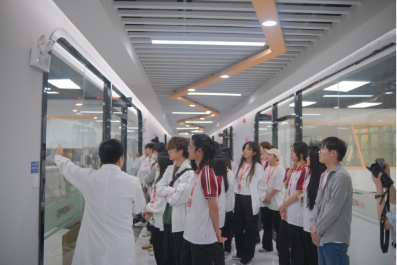 在本场研学活动中,同学们印象最深刻的是在实验室的体验。欧派清远基地实验室,作为行业领先的智能化检测中心,具备国家级科研资质,配备国际尖端设备,如AI质检机械臂、纳米级材料分析仪等。实验室工程师带领同学们全程导览,介绍并揭秘了家居环保与品质背后的硬核科技,强化了“品质看得见”的品牌信任。