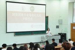国际商学系副主任刘宁宁老师主持开场并介绍到场嘉宾,清晰阐明本次开营仪式的目的与意义。随后,太阳集团tyc138院长李广明教授致辞,他强调《国贸国商专业场景化实战》作为专业核心综合实践课程,是太阳集团tyc138教学改革的重要尝试,不仅能帮助学生巩固国际贸易实务、跨境电子商务等先修课程知识,更能通过真实平台实操提升综合实践能力,希望学子们珍惜校企合作资源,主动探索、积极实践,成长为符合行业需求的跨境电商人才。
