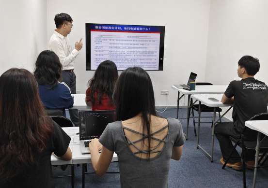 在师生与企业专家的共同助力下,同学们不断完善商业计划书框架,补充细节内容,逐步形成了结构完整、逻辑清晰的初稿。一半小时后,各小组依次汇报成果。何总的点评精准且具指导性,同学们纷纷表示收获满满。