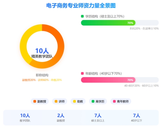 电子商务专业,以行业前沿的课程体系、实战化的人才培养模式、深度的校企协同育人机制以及数字经济的全球化视野为特色,致力于培养新时代的数字化、创新型电商精英。