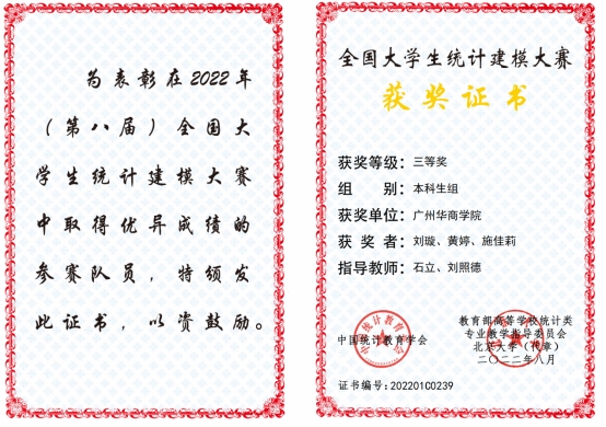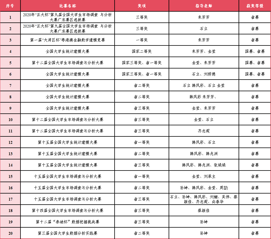 本专业学生培养成效显著,具体表现为:①学生竞赛方面:2019-2025年,在相关的国家级、省级和校级相关竞赛中取得了较好的成效:2019.4-2020.3共获得5项奖励,其中4项省赛的奖励,1项国赛的奖励;2020年共获得4项目省赛奖励;2021.03-2021.12年共获得38项奖励,其中国赛二等奖1项,国赛三等奖3项,省赛一等奖10项,省赛二等奖9项,省赛三等奖15项,优胜奖3项,特别提名奖1项。2022年统计建模大赛中全国二等奖2项,全国三等奖4项,广东省一等奖8项、二等奖7项、三等奖10项,名列广东省各高校排名第三。正大杯市场调查大赛中全国赛三等奖 2项,广东省赛一等奖2 项,二等奖 1项,三等奖7项;2023年统计建模大赛广东省一等奖3项、二等奖1项、三等奖8项,正大杯市场调查大赛广东省赛一等奖 1项,二等奖5项,三等奖 11 项;2024年统计建模大赛广东省一等奖2项、二等奖3项、三等奖6项;正大杯市场调查大赛广东省赛二等奖6项,三等奖 17 项;2025年统计建模大赛全国三等奖2项,广东省一等奖4项,广东省二等奖4项,广东省三等奖3项;正大杯市场调查大赛广东省一等奖3项、二等奖5项,三等奖20项,其中4个队伍推荐到广东省大学生市场调查与分析大赛获奖。②学校综合测评获奖方面:2018-2019学年综合测评校优秀生有11人,占全校获奖人数的0.46%,有7人获得优秀班干部称号,18本经济统计学班获得优秀班集体荣誉; 2019-2020学年度优秀学生干部有9人,有24人获得优秀学生奖励和称号,18统计班获得优秀班集体荣誉;2020-2021学年度优秀学生干部有8人,有22人获得优秀学生奖励和称号。③学生就业方面:20届经济统计专业就业率达88.89%;21届经济统计专业就业率达92.11%;22届经济统计专业就业率达90.91%,大部分毕业生都能找到专业对口的岗位。