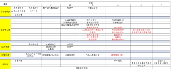 在6M模式指引下,经济统计学专业课程体系设置遵循模块化整合、多维度融合、渐进式培养、市场化导向、多元化实践和导师制引领原则。模块化整合将课程划分为专业基础、核心、经济学、计算机及实践等模块,各模块目标明确且相互关联;多维度融合促进统计学与经济学、计算机科学深度结合,培养学生跨学科思维与综合应用能力;渐进式培养使课程由浅入深,从基础理论到实践应用逐步提升学生能力;市场化导向依据市场需求设置商务智能、大数据分析等课程,增强学生就业竞争力;多元化实践构建涵盖实验实训、竞赛、创新创业及企业实习等的实践教学体系,培养学生实践操作与创新能力;导师制引领为学生配备专业导师,在课程学习、科研实践、职业规划等方面给予指导,助力学生个性化成长,实现亦师亦友、共同进步,以此培养适应时代需求的高素质专业人才。