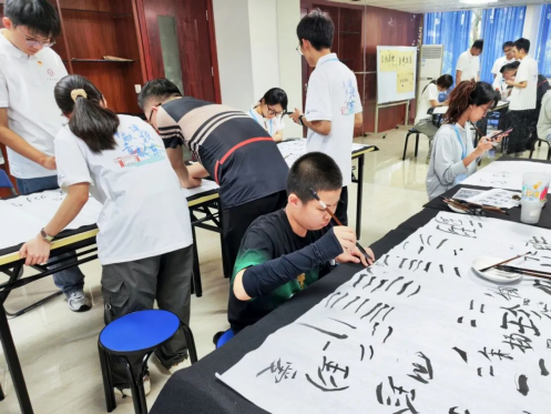 仪式结束后,双方在党群服务中心二楼举办了禁毒主题书法培训活动,实践队特别邀请了当地知名书画家王超老师,为孩子们和队员们带来了一次翰墨飘香的书法培训活动。
