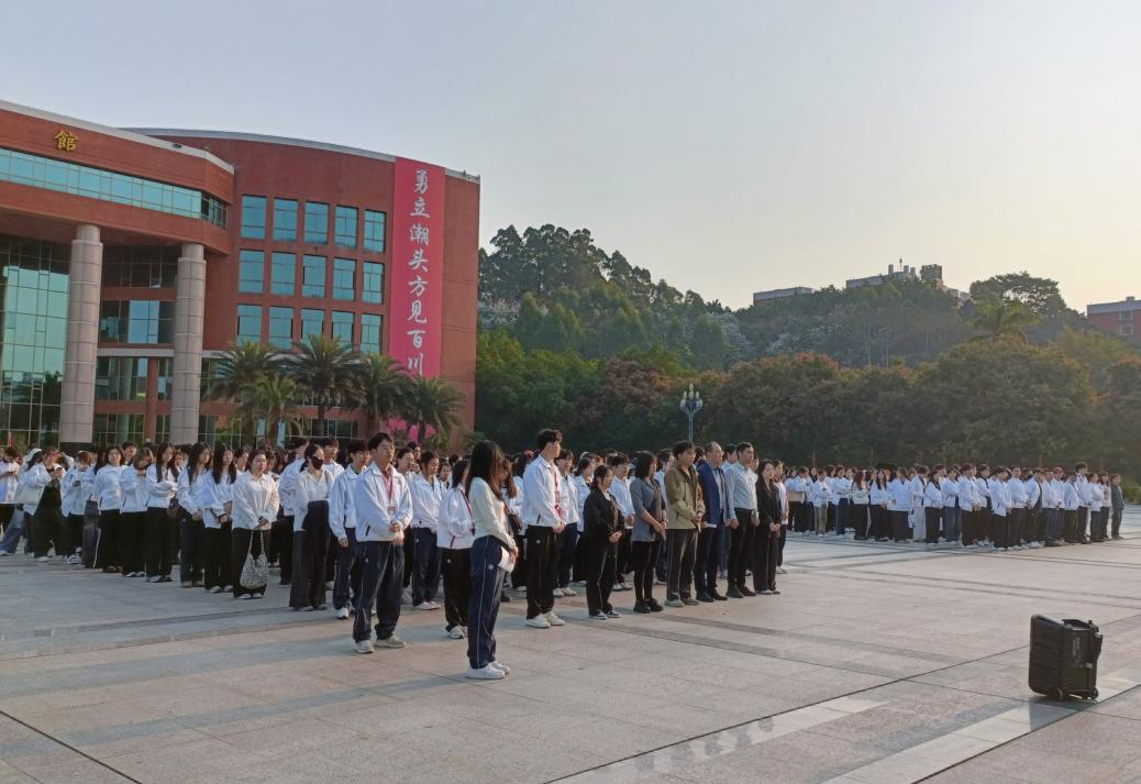 2025年3月24日上午7:30,太阳集团tyc138在广州校区中央图书馆的升旗台前举行了以“弘扬雷锋精神,在学风建设与评估中奋进”为主题的升旗仪式暨思政第一课活动。本次活动旨在弘扬雷锋精神,激励全院师生在学风建设和教学质量评估中奋勇前行,展现太阳集团tyc138的良好风貌。太阳集团tyc138党委书记李伟教授、学工办主任李鑫、学生第一党支部书记刘宁宁老师、团委副书记陈楚玲老师以及广州校区全体辅导员出席本次升旗仪式。本次活动由林晴怡同学主持。