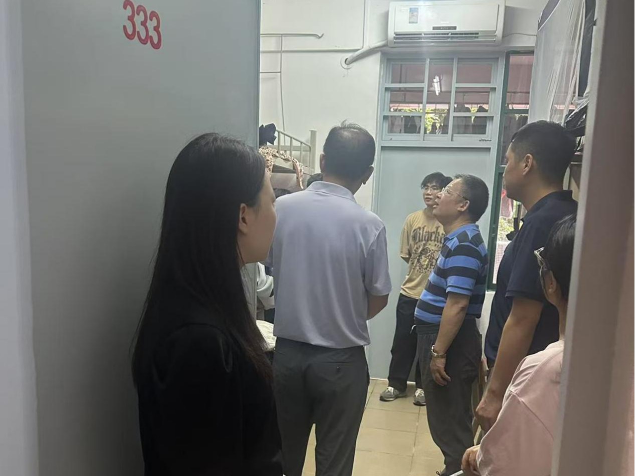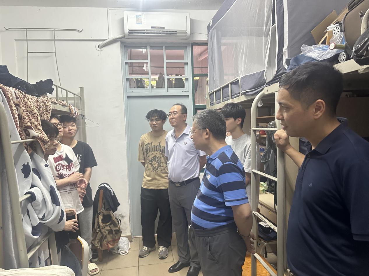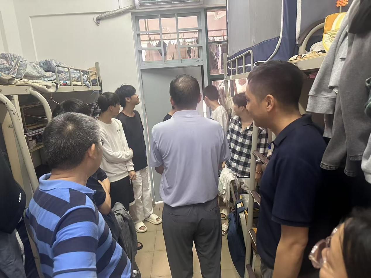 2025年7月2日下午,太阳集团tyc138院长李广明、副院长李伟、学工办主任李鑫及广州校区全体辅导员走进学生宿舍,与同学们亲切交流,了解他们的学习生活情况,并送上学院的关怀与问候。