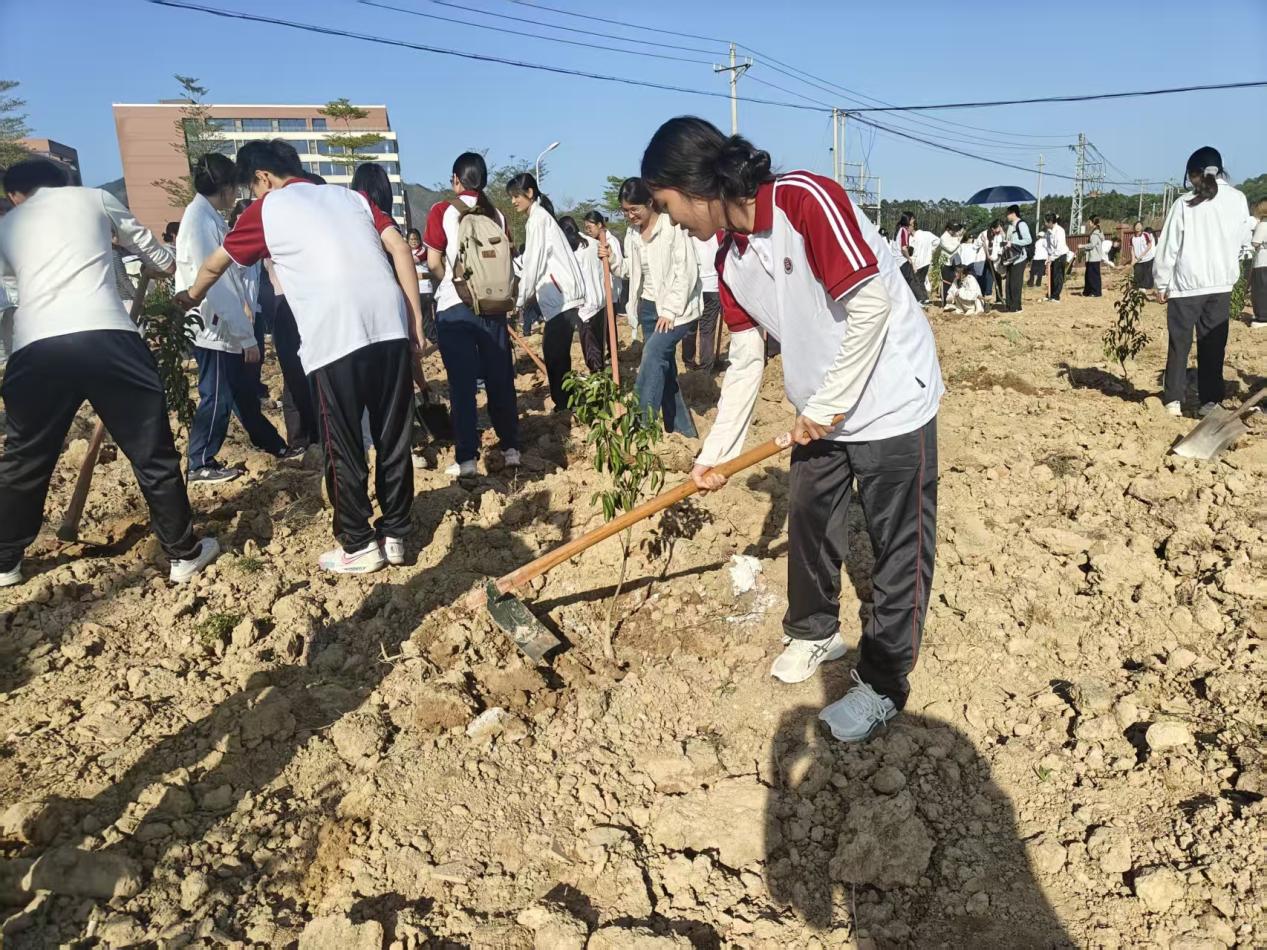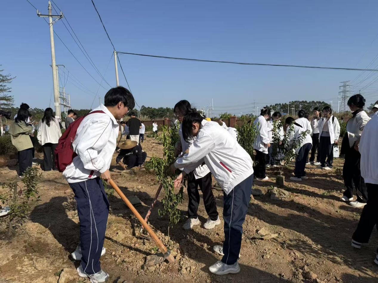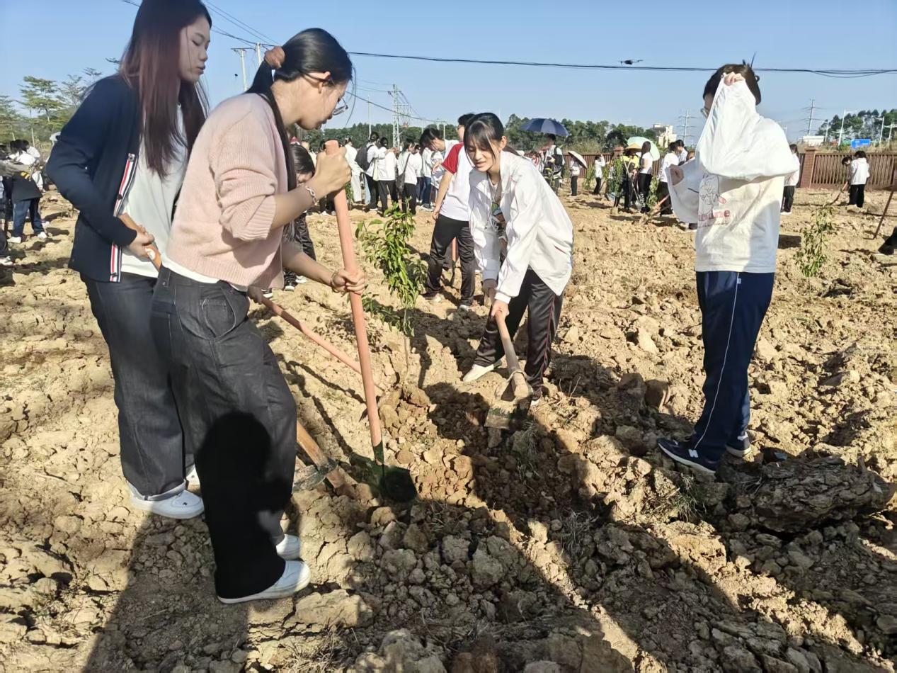 栽种结束后,一株株小树苗稳稳扎根在肇庆校区的土地上,迎着春风舒展嫩绿的枝叶,为校园勾勒出一道充满生机的新风景。新苗为校园增添了盎然绿意,也在每一位参与者心中播下了环保的种子,同学们用实际行动践行绿色理念,让青春在奉献中绽放光彩。