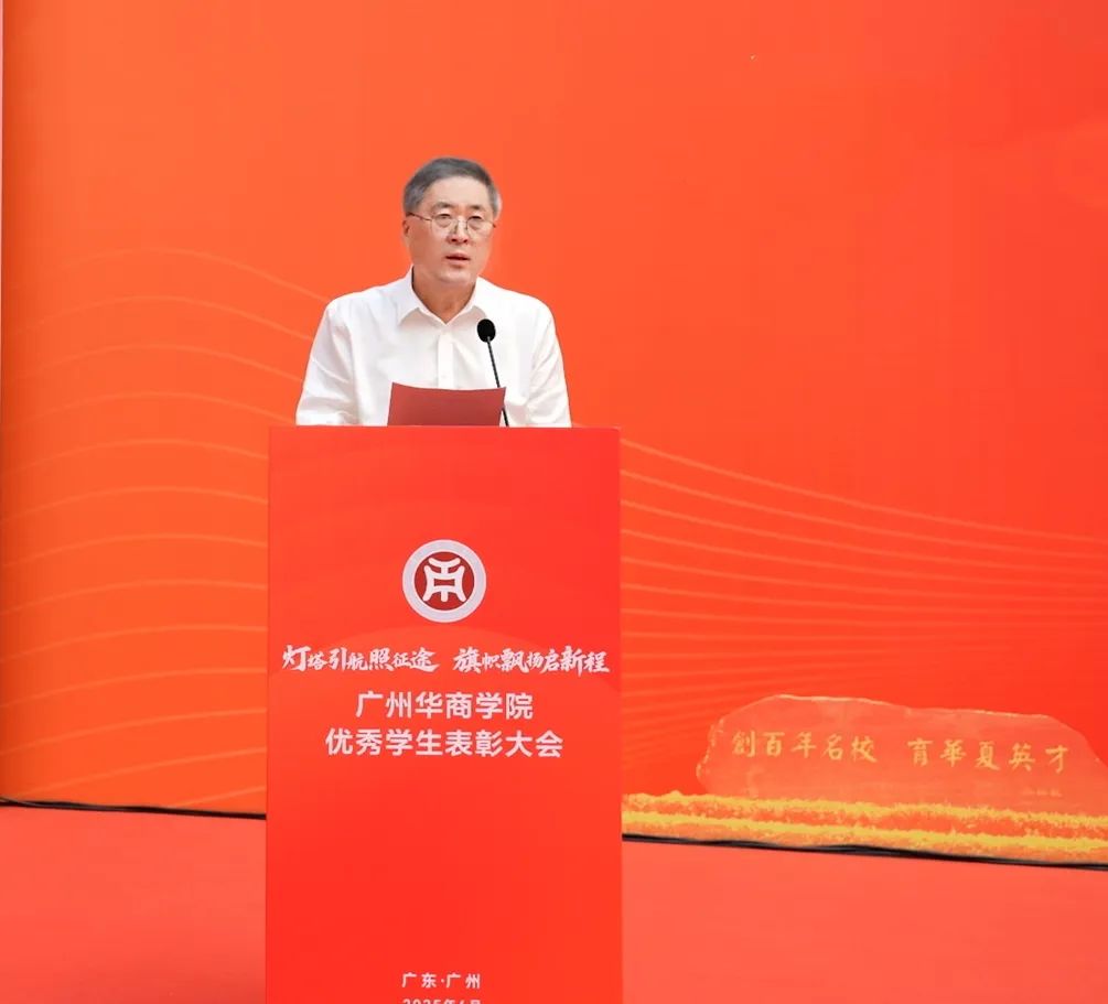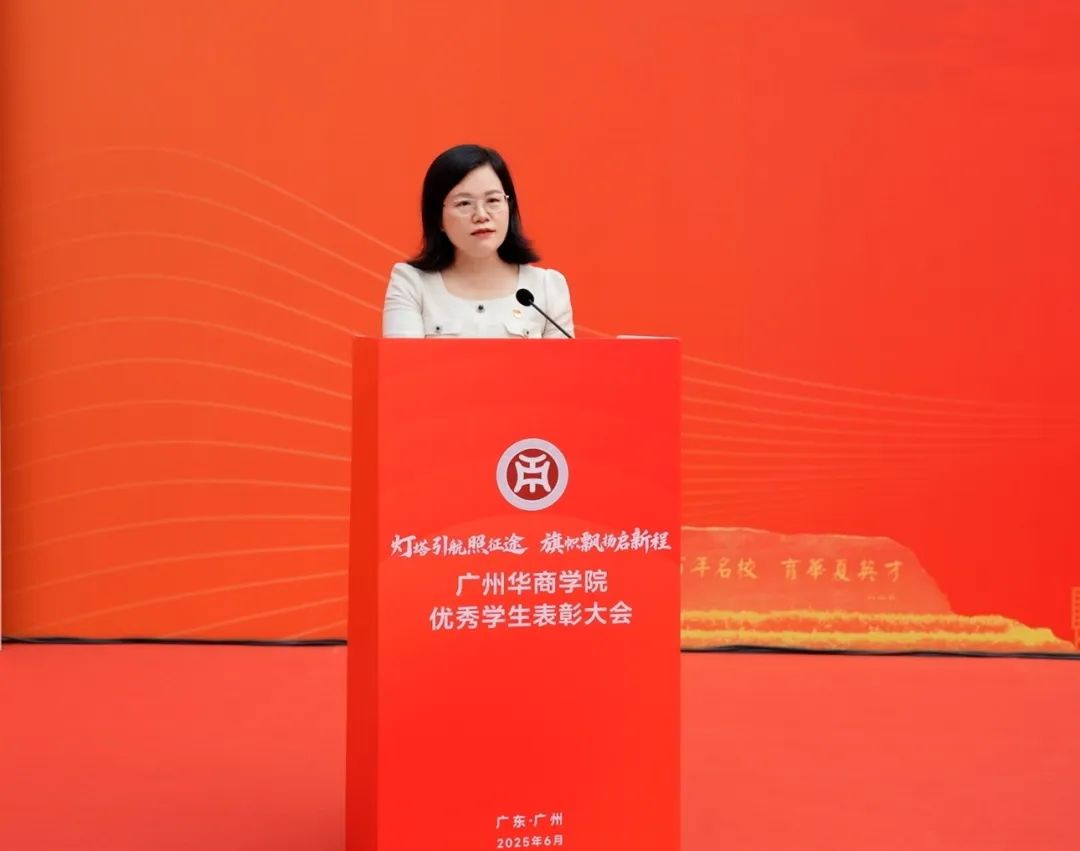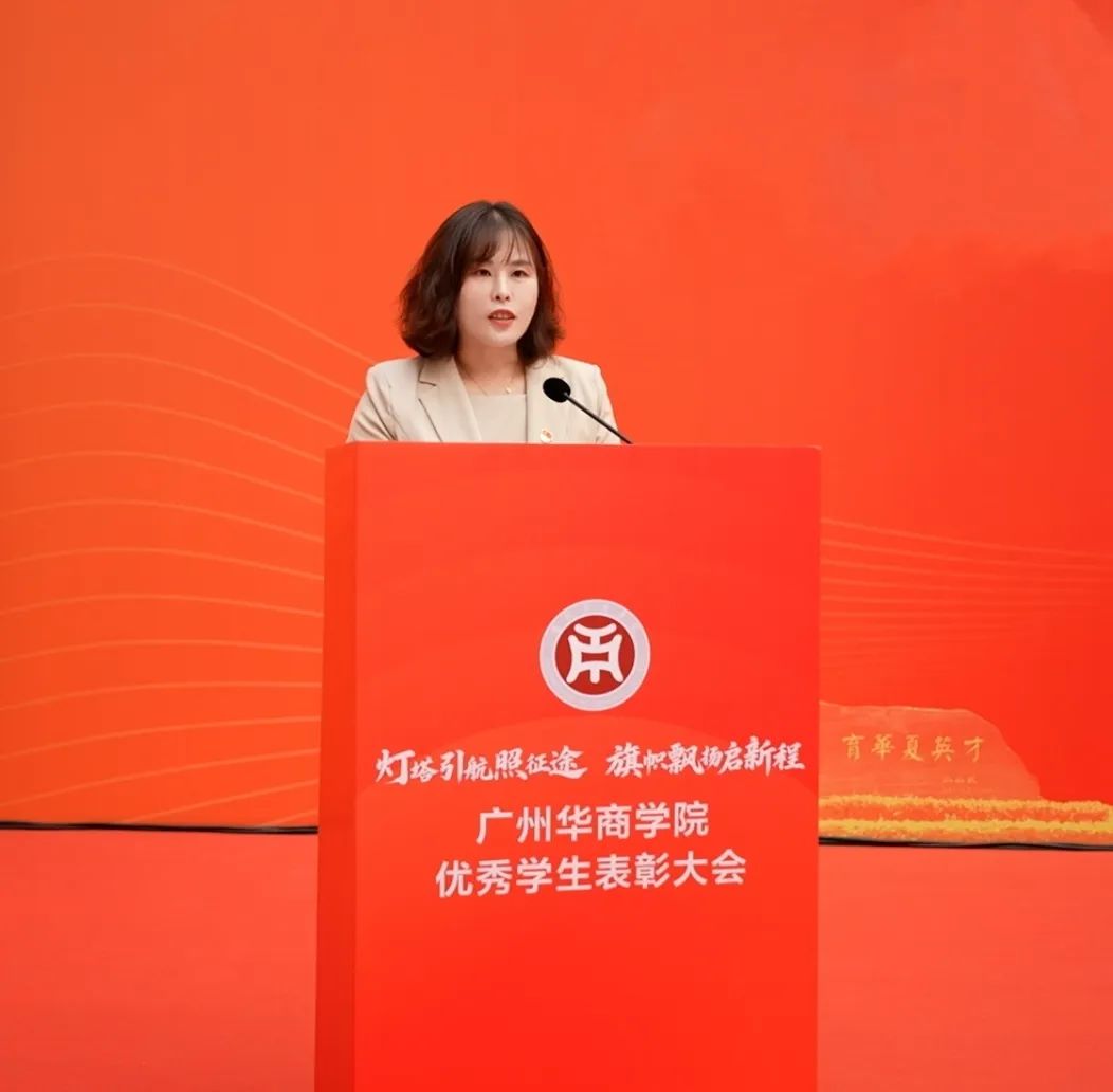 校党委书记陈玉欢致辞,并代表学校党委向获得表彰的同学表示热烈祝贺,向辛勤培育学生的全体老师致以崇高敬意。陈书记表示,自建校二十年来,学校扎根粤港澳大湾区,始终坚守为党育人、为国育才的初心使命,深耕应用型人才培养沃土,从蹒跚起步到如今学科体系日益完善、育人成果硕果累累,这一路凝结着历代华商人心血,更离不开每一位师生的拼搏奋进,全体华商人用生动实践诠释“创百年名校,育华夏英才”的办学理念。表彰优秀学生正是以榜样力量号召全体华商人将个人成长融入学校发展大局,在粤港澳大湾区建设中找准青年担当的时代坐标。