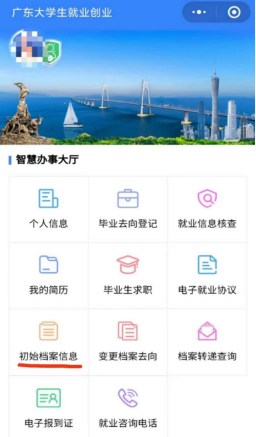 微信扫一扫下方葵花码或搜索小程序:广东大学生就业创业。点击 【初始档案信息】,按相应情况填报。