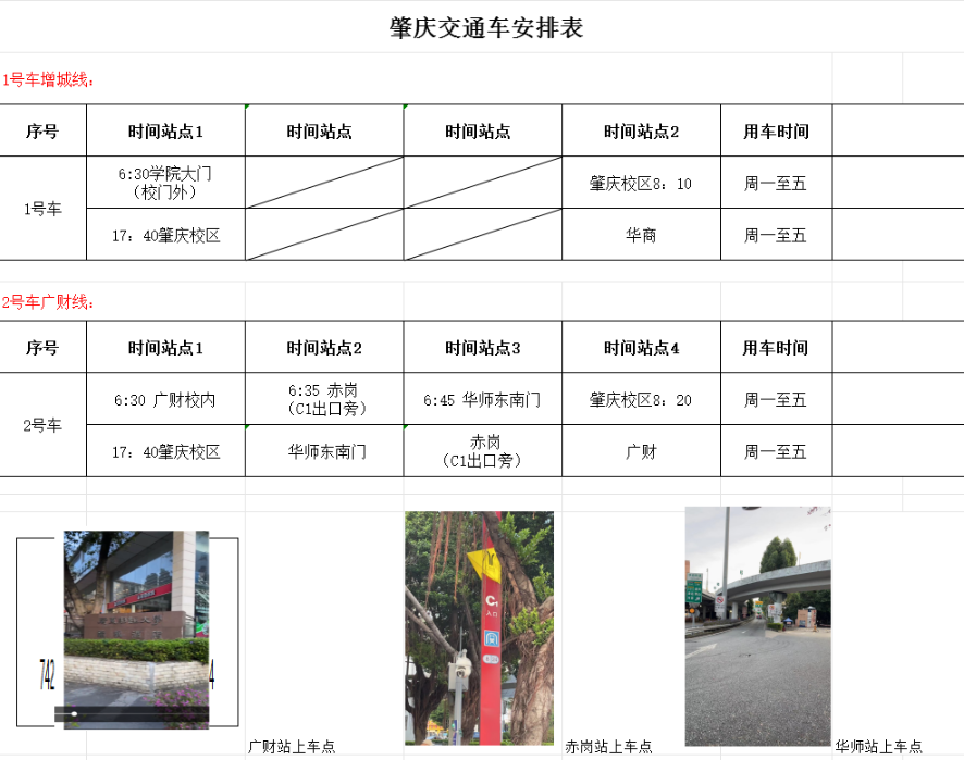 二、肇庆校区1.广州校区6:30---肇庆校区 2.广财6:30--赤岗6:35--华师东南门6:45--肇庆校区 ; 3.返程时间:17:40肇庆校区返回 ; 三、2月26日-27日,3月2日开始正常发车